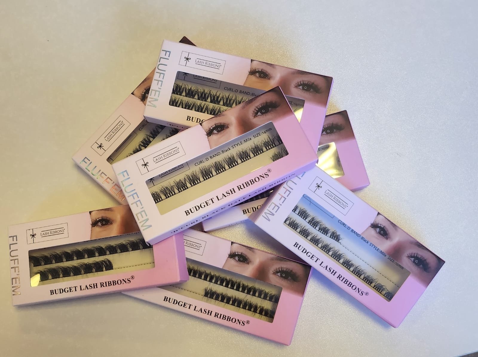 This range of Fluff’Em Budget Lash Ribbons® are the perfect solution for customers who do not wish to compromise on quality whilst being extremely affordable. These lashes are so fluffy and sooo soft, its hard to believe the price tag! The two half lash ribbons will give you approx 2.5 sets of lashes. If you care for these properly you should be able to reuse 2/3 times, but please do not expect the same durabilty as our standard lash ribbons, this is reflected in the cost of these. The range is available in 10mm, 12mm and 14mm allowing you to create a whole range of different styles